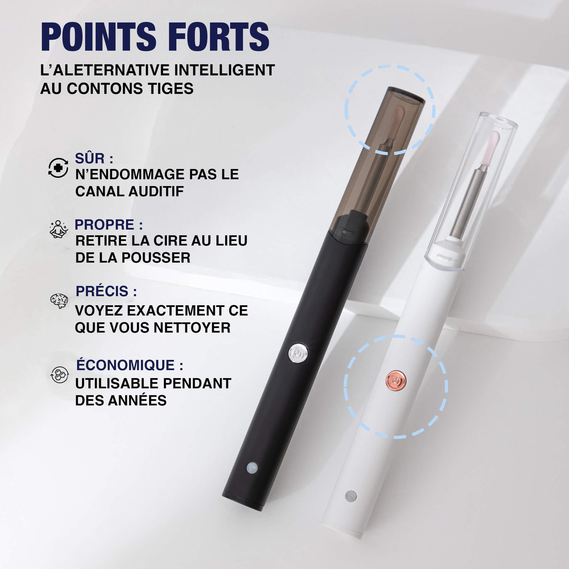 VisioEar n'a rien d'un accessoire inutile. Sa caméra haute définition, ses embouts en silicone médical certifiés et son application de visualisation créent un environnement de nettoyage sûr, précis et confortable. Fini les cotons-tiges qui irritent sans nettoyer. Fini cette sensation permanente d'oreille "pas propre". Fini les gestes à l'aveugle qui ne servent à rien. Avec VisioEar, vous voyez. Vous nettoyez. C'est propre. Et cette différence, vous la sentez dès la première utilisation.